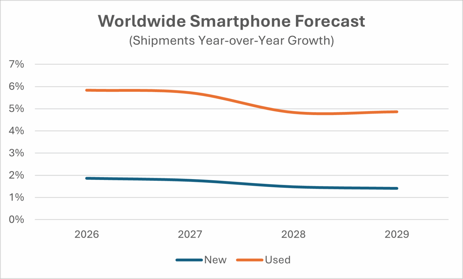However, the used smartphone market will continue to grow at a faster pace, albeit with a gradual deceleration. Starting at 5.8% in 2026, growth is projected to ease to 4.9% by 2029 as the market matures and supply chains stabilize. The sustained momentum in the used segment underscores its role as a mainstream choice, driven by affordability, sustainability, and the continued expansion of trade-in and refurbishment programs.